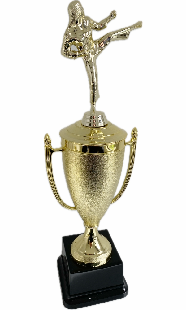 Gold Karate Female Trophy on Black Weighted Plastic Base