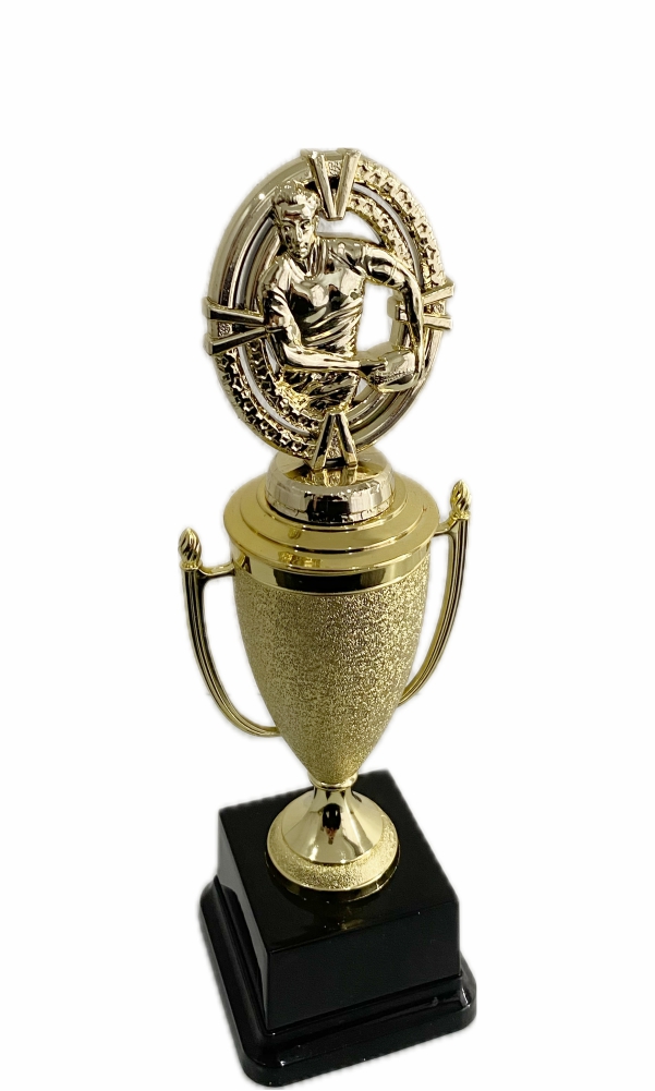 Gold Rugby Pass Trophy on Black Weighted Plastic Base